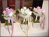 ブーケホルダーにドライフラワーをいっぱいかざりつけてスタンドベースには白かばポットを使います。